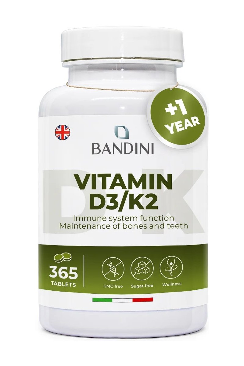 Витамин Д3 2000 IU + К2 200mcg - 365 таблетки | Bandini Pharma - Италия