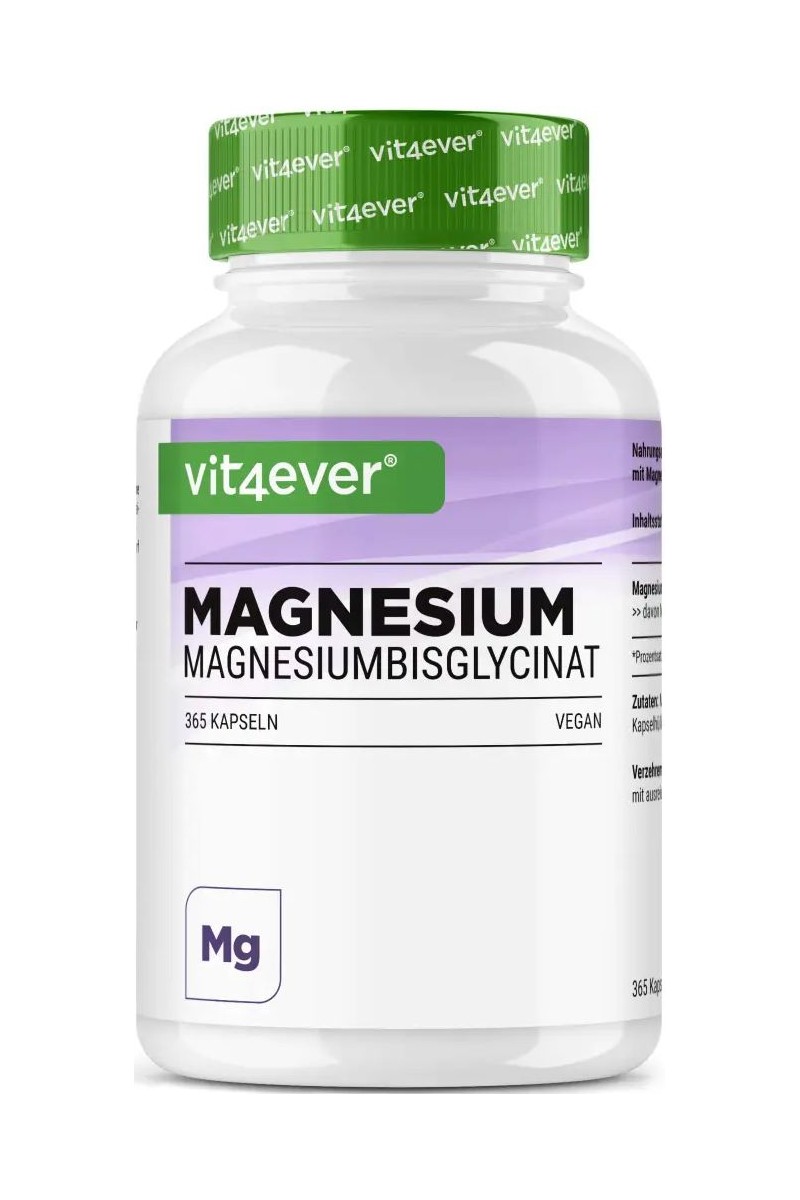Магнезият на Vit4ever e под формата на магнезиев бисглицинат (хелатиран магнезий). Това означава, че е направена комбинация от магнезий (1 молекула магнезиева сол) и аминокиселината глицин (2 молекули глицин). Тази комбинация е по-добре усвойма от организма, защото тялото не вижда магнезиевото съединение като минерал, а като аминокиселина, така че не се конкурира с други минерали и заобикаля класическия процес на усвояване. Магнезиевият бисглицинат не се влияе от стомашната киселинност и свободно се абсорбира през чревната мукоза, без да има нужда от допълнителна обработка за абсорбцията му.